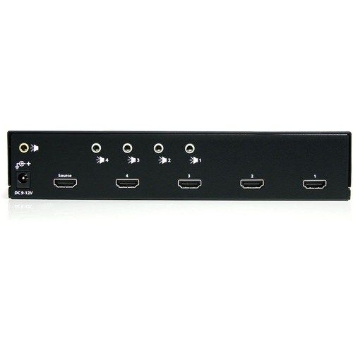 StarTech.com HDMI Splitter 1 In 4 Out - 1080p - 4 Port -Mounting Brackets - 1.3 Audio - HDMI Multi Port - HDMI Audio Splitter - Displays the same image with sound on 4 screens; Splitter / signal amplifier - EDID between your video source and displays native settings - Supports HDMI audio or 3.5mm stereo audio connection - Up to 49ft (15m) HDMI Cable - Full HD 1080p; TAA