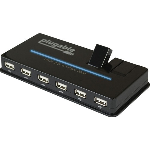 Plugable USB Hub, 10 Port - USB 2.0 with 20W Power Adapter and Two Flip-Up Ports - USB 2.0 Type A - 480 MB/s - External - 10 USB Port(s) - 10 USB 2.0 Port(s) - PC, Mac, Linux